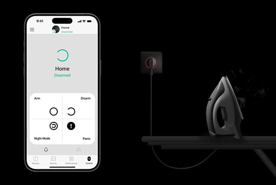 When you leave your house, arm the system. All energy consuming appliances will be automatically switched off. Iron, heater, and toaster will no longer create a risk of fire.