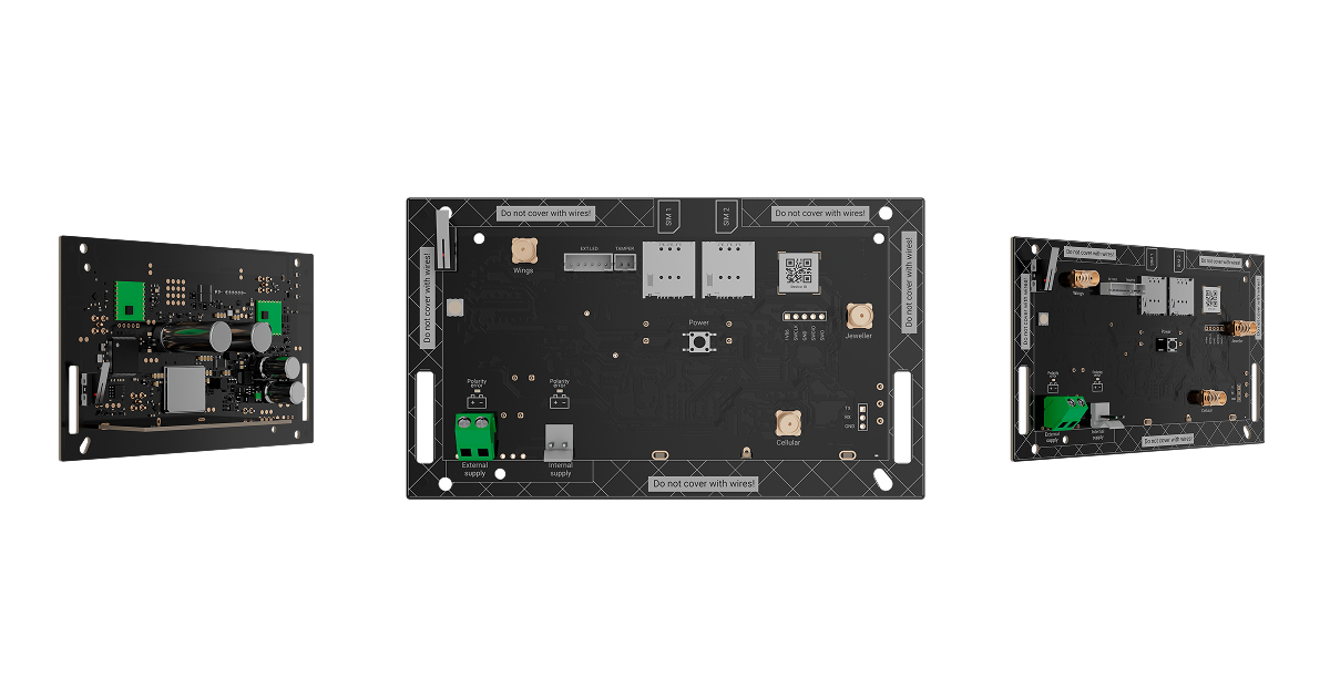 The board has a connector for attaching a tamper board. The tamper board detects when the Case lid is opened and notifies of attempts to detach Case with the installed hub from the surface.