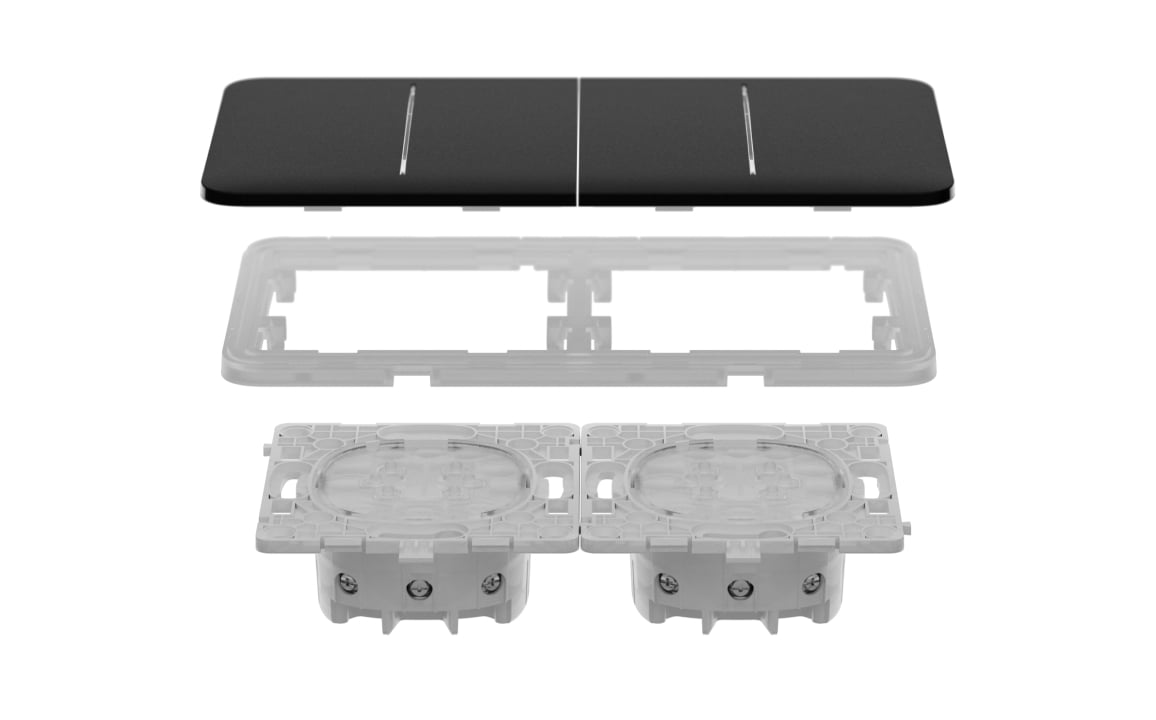 LightSwitch akıllı anahtarlar ayrı olarak veya Outlet ile birlikte kullanılabilir. Cihazlar aynı çerçeve tasarımı ile aynı renk tonlarına sahiptir ve Frame içine takılabilir.